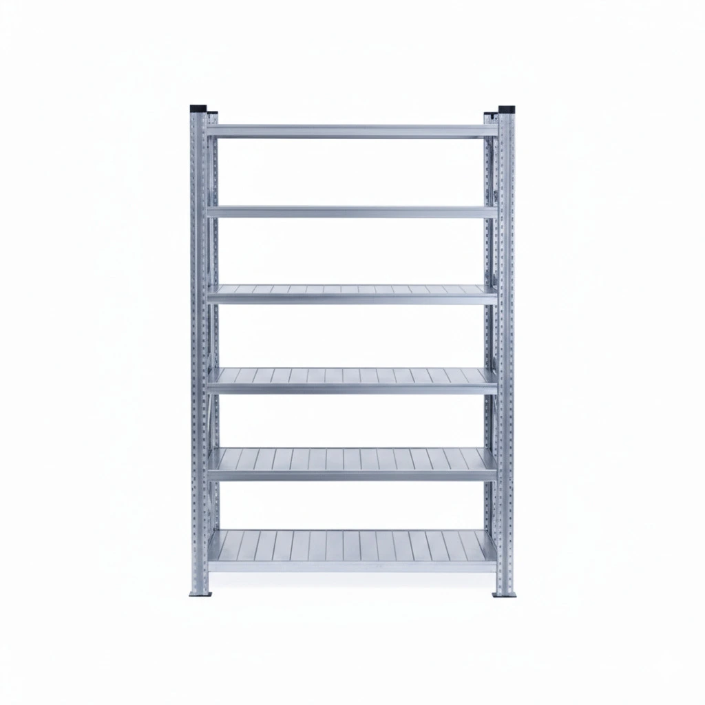 Scaffalatura metallica modulare ad incastro per carichi medio/pesanti. Composta da 6 ripiani rinforzati 150×60 in acciaio zincato altezza 250 cm. Sopporta fino a 130 kg per ripiano. Montaggio a incastro, semplice e rapido.